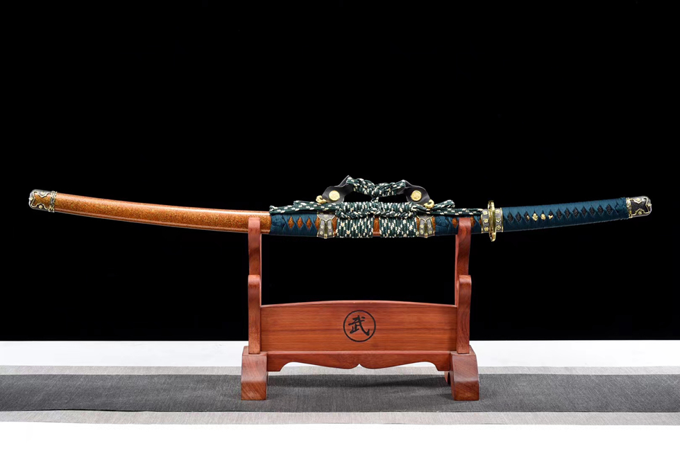 高性能弹簧钢锻打弯曲90度不变形,合金装具套件,硬度高达60°砍铁不伤刃,带鞘全长104厘米,刃长71厘米,柄长27厘米,刃宽3.2厘米,配高端锦盒 金梨子大漆鞘搭配独家粗下绪