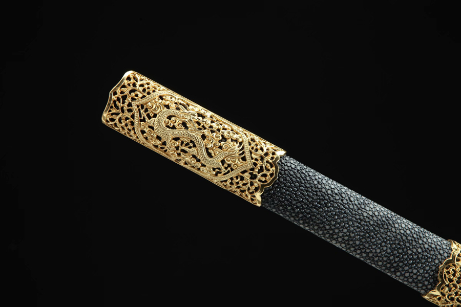 镀金精龙唐剑(真鱼皮粗颗粒—黑色款)。
