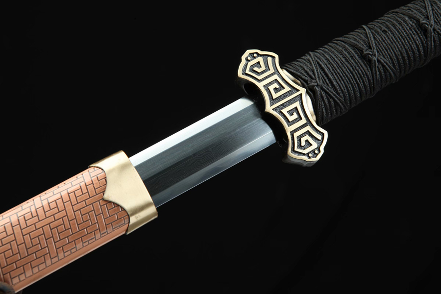 “双龙戏珠”回纹环首唐剑(紫铜鞘款)