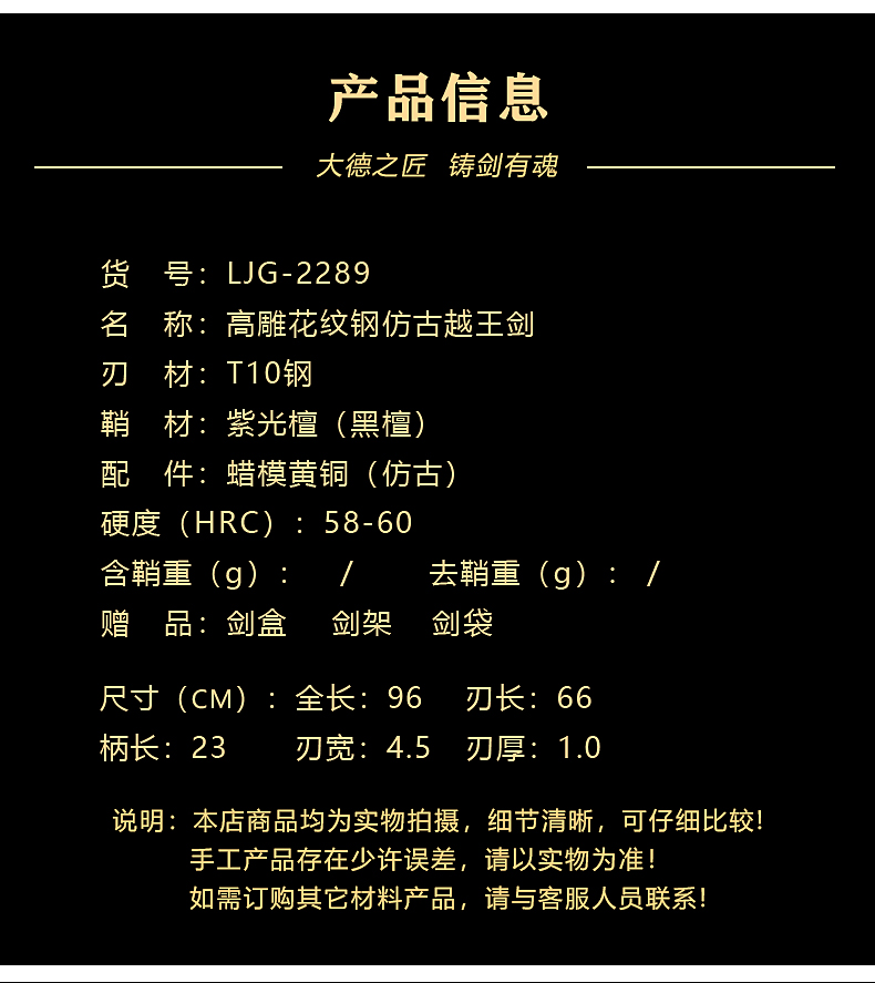 高雕仿古越王剑 T10钢