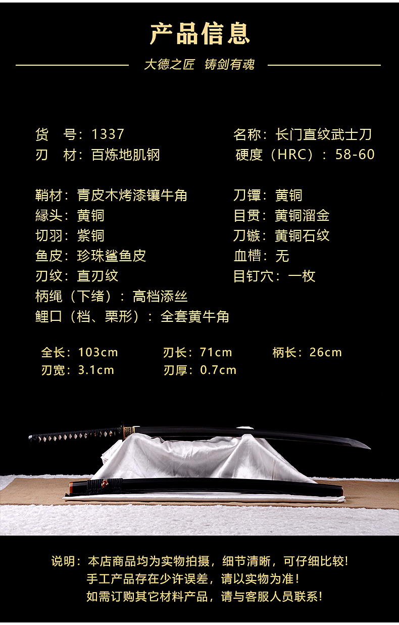 长门直纹武士刀 百炼地肌钢
