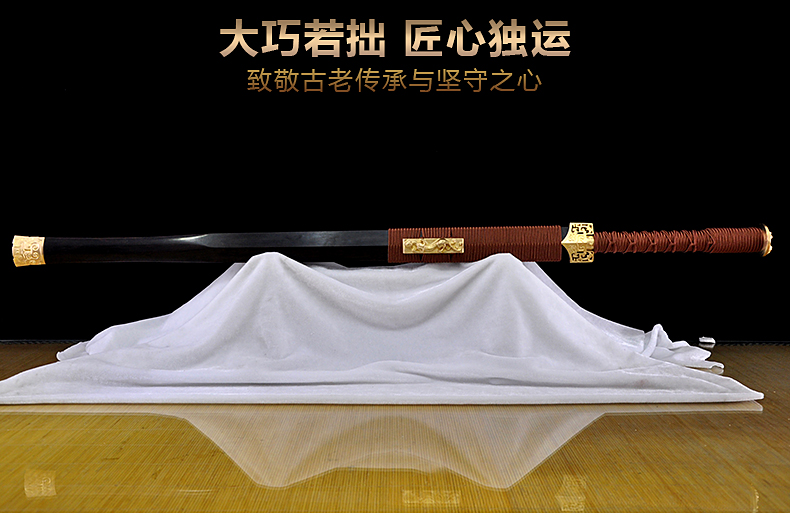 三色铜“青龙刀盘”武士刀(黑檀木款)