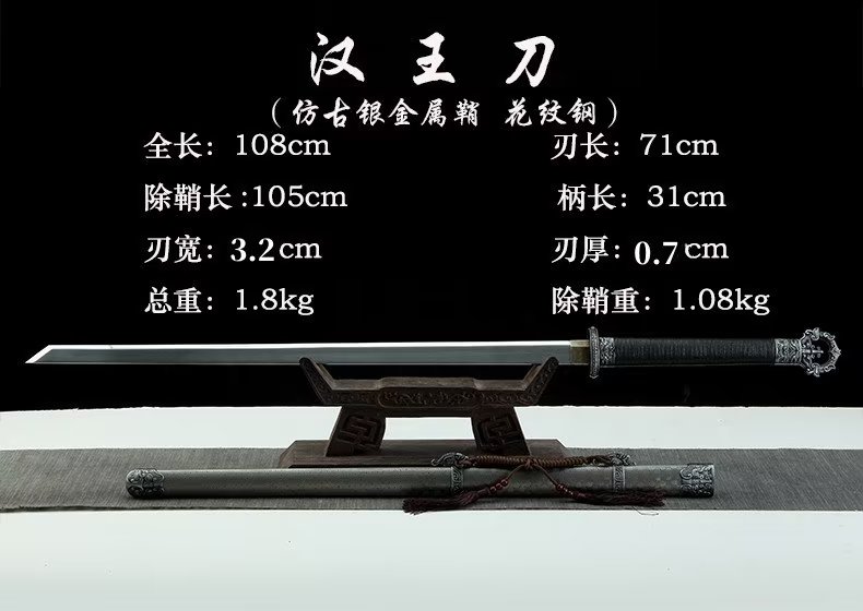 • 26寸仿古银—“回纹”铁鞘—汉王刀(百炼花纹钢款)