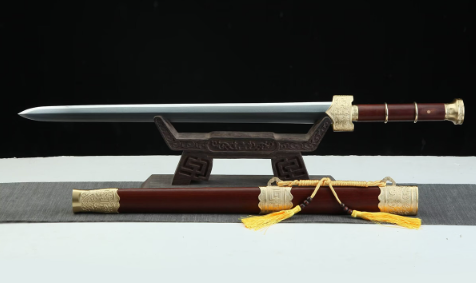 • 28寸“梅兰竹菊”不锈钢起脊太极剑(亮铜—酸枝木款)