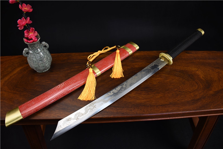 • 精品T10树叶纹烧刃研磨灰打刀《应龙》
