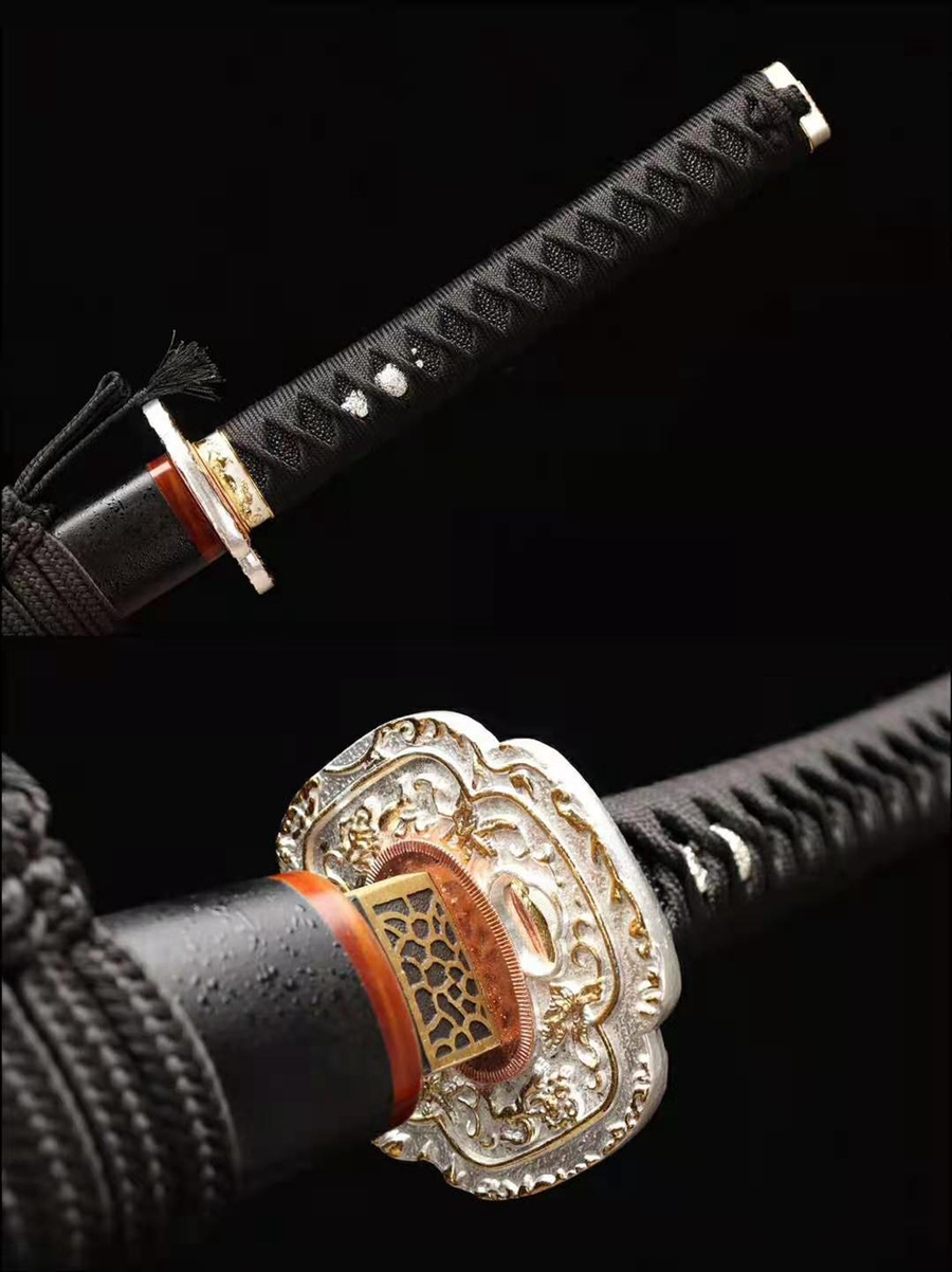 刃材:t10烧刃(凤羽焰纹) 鞘材:实木油漆牛角鞘