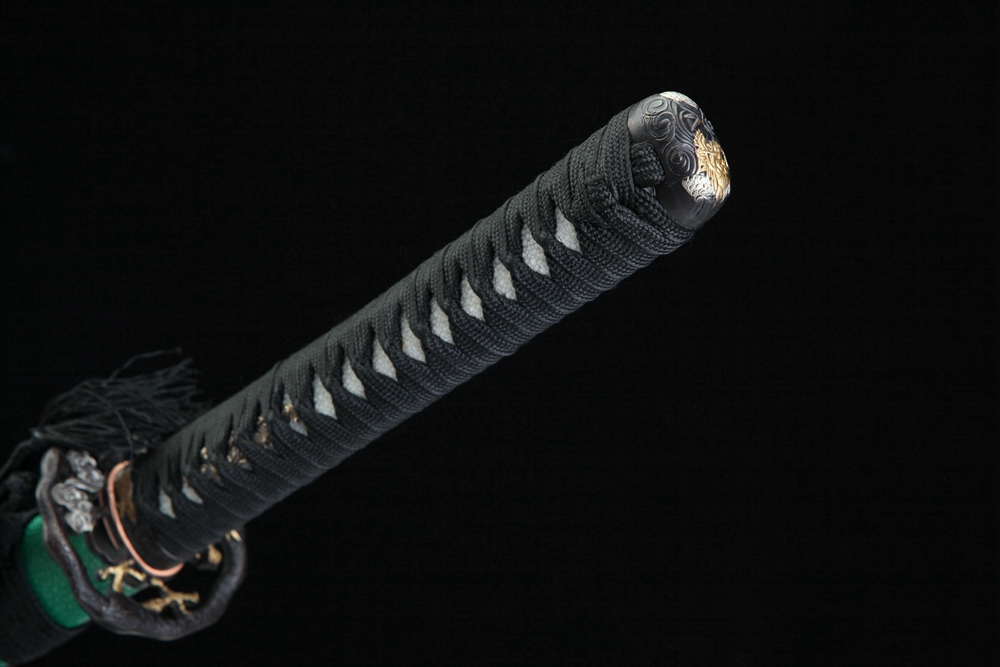26寸三色铜“耀龙刀盘”武士刀(真鱼皮粗颗粒—绿色款)。