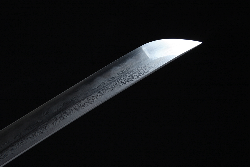 装貝:纯铜精雕、精细打磨、古法鎏金、银、铜三色;刀鞘:包粗颗粒真鲨鱼皮;刀身:百炼花纹钢、手工锻造、古法覆土烧刃、精细手磨16813000。天梯纹烧刃16813500