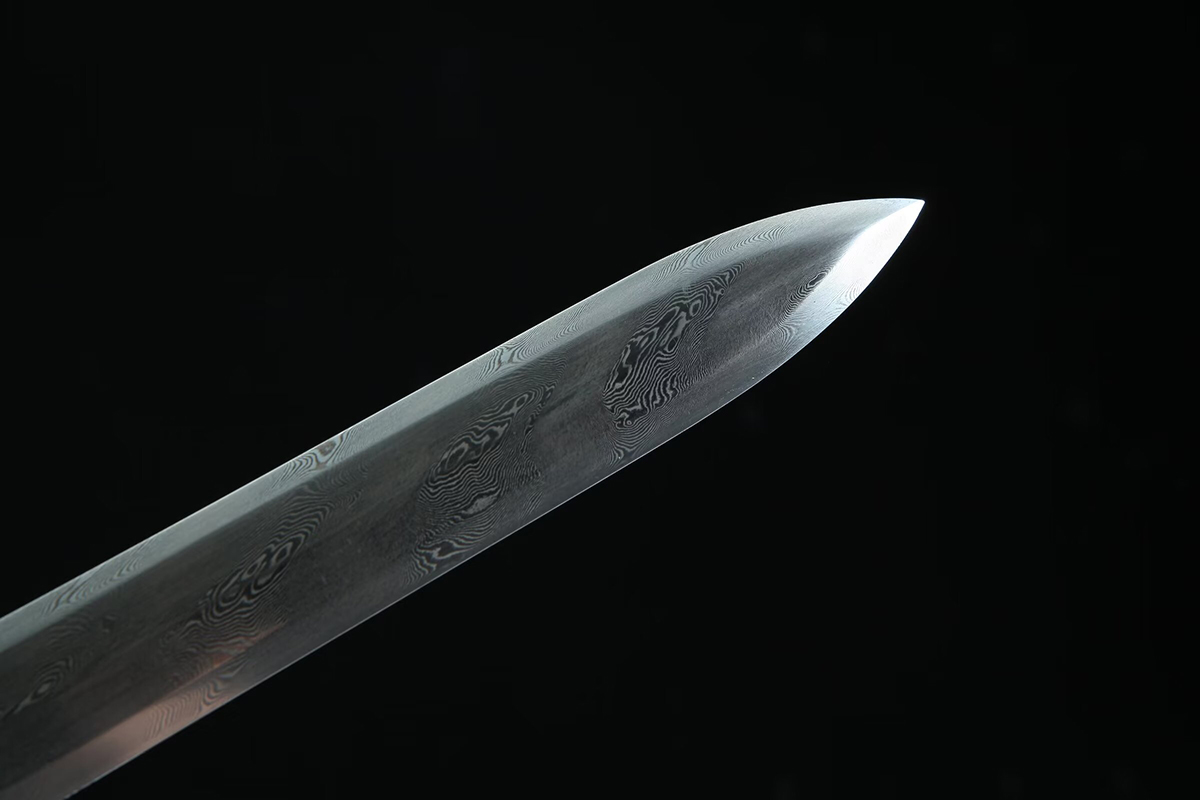 剑身:百炼大马花纹钢、手工锻造、扭转、八面制作、精细手磨