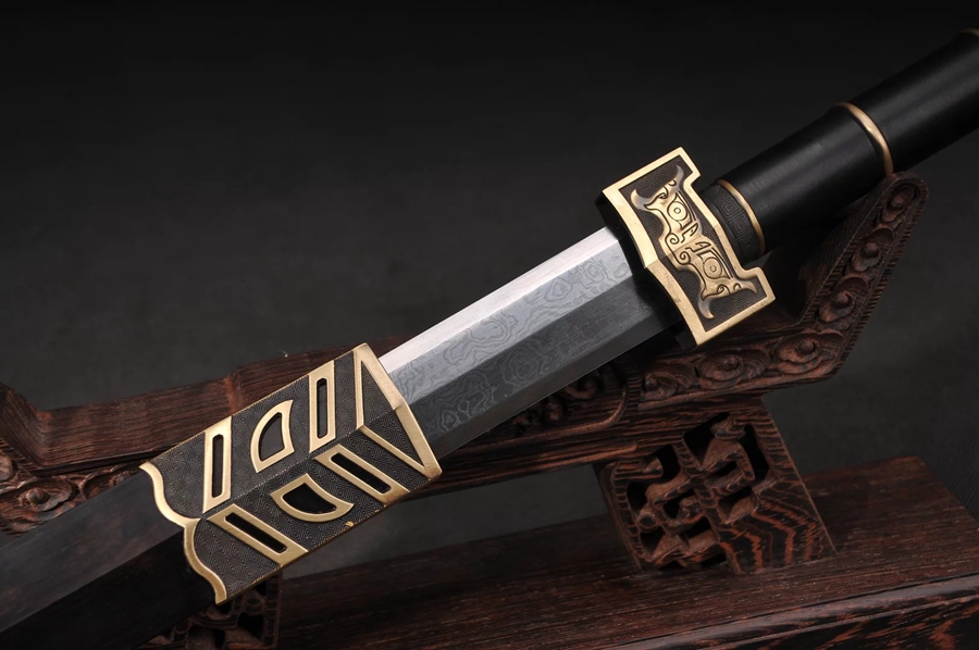 铜装如意剑。 黑檀木、(百炼花纹钢)