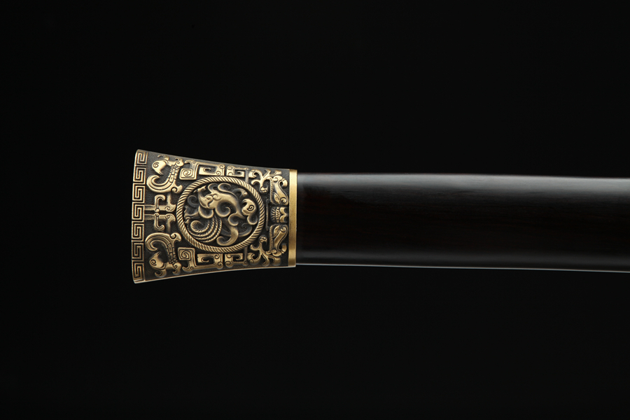 装具:纯铜精雕、精细打磨、做旧;剑鞘:优质黑檀木;