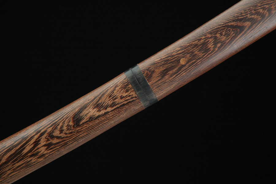 鞘、刀柄:用优质鸡翅木连体制作、并镶嵌牛角;