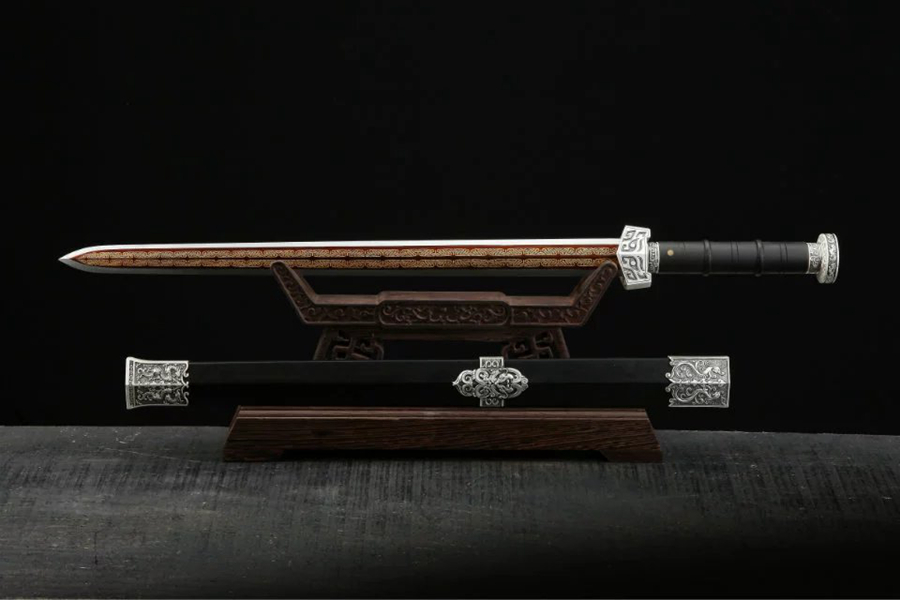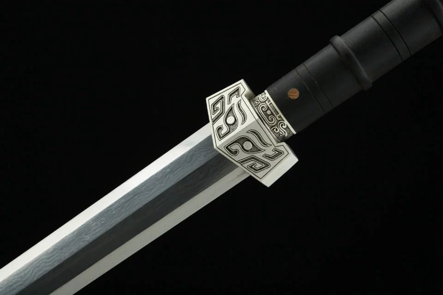 装具:合金镀银装;剑鞘:优质乌木;剑身:百炼花纹钢01840660。花纹钢烧刃另加115。