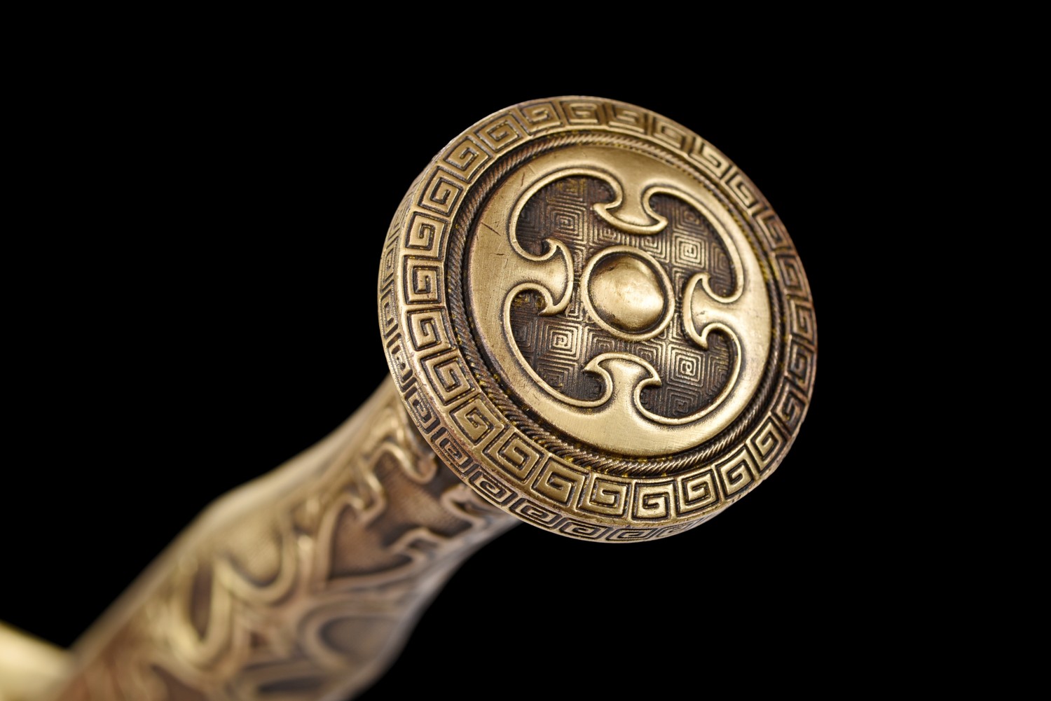 剑身百炼花纹钢锻打而成质地坚硬,精细研磨八面,覆土烧刃。美观霸气!上等花梨木制作剑鞘,色泽光润!纯铜精雕汉剑装具,手柄纯铜精雕美观霸气!带鞘全长106厘米,柄长24厘米,刃长76.5厘米,刃宽3.7cm,净重2.44千克,收藏首选,赠礼佳品!