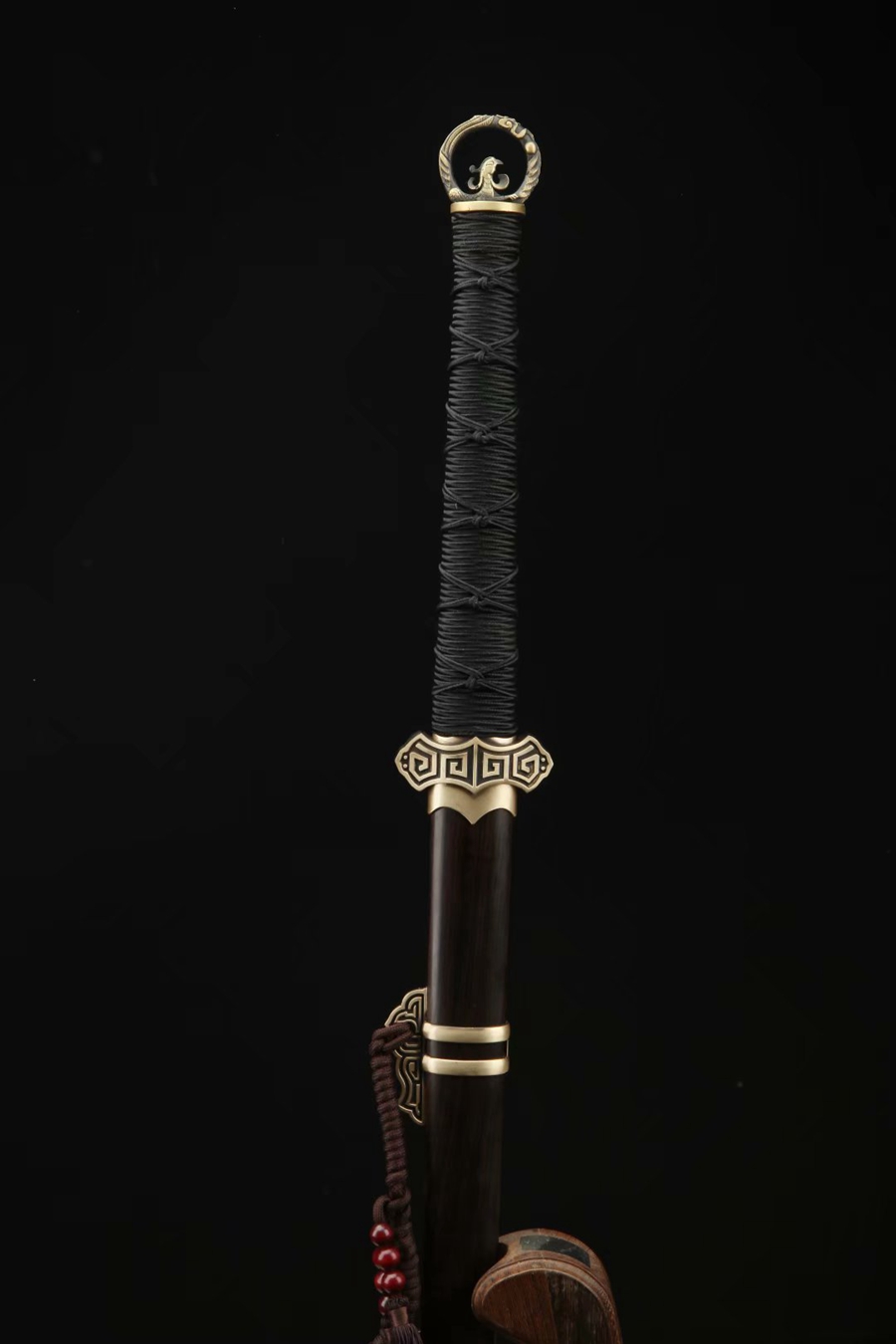 装具:纯铜精雕。剑鞘:优质黑檀木。剑身:20寸百炼花纹钢1380,花纹钢烧刃另加130、羽毛纹扭转纹烧刃另加252
