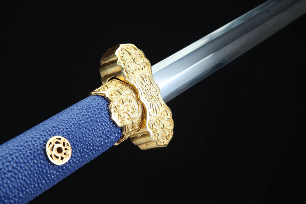 镀金麒麟吉祥唐剑(绿色鱼皮款)。