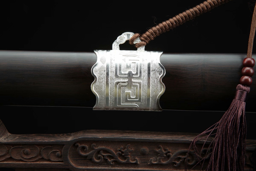 装具:纯铜精雕、精细打磨、镀银;剑鞘:优质黑檀木;
