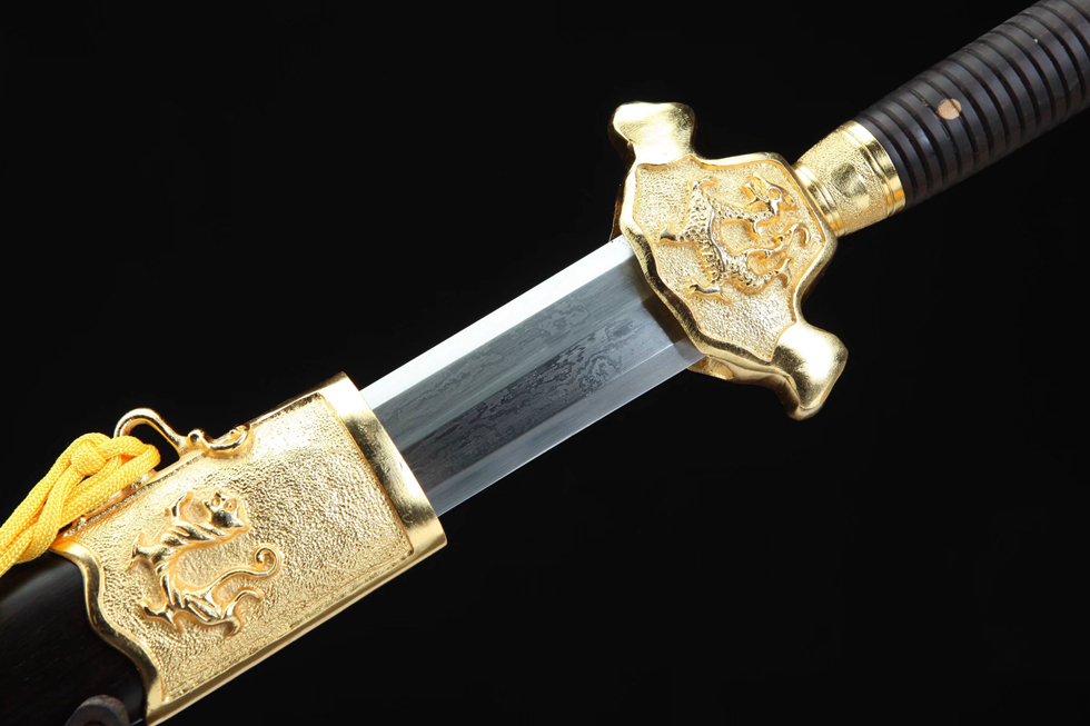 剑鞘:优质黑檀木;剑身:百炼花纹钢、手工锻造、精细手磨18502500。花纹钢烧刃另加